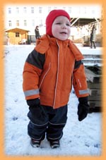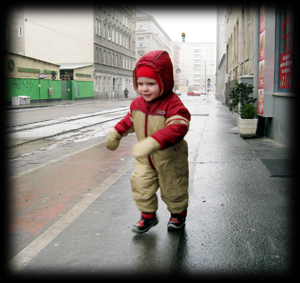 · Endlich ist der Winter in Wien eingezogen und hat die Straßen winterlichem Weiß überzogen. Daher haben wir sehr gerne auf unser Auto verzichtet und sind durch den Schnee gestapft. Beim Hinweg in die Nachsorgeambulanz war's nur gefrierender Schneeregen, aber am Heimweg war's schon richtig viel Schnee, zumindest für Wiener Verhältnisse :) · Die Injektion war schnell erledigt und so war ich um 9:45 schon wieder im Kindergarten. Ausgeschlafen aber grantig :(. Zuerst wollt ich nicht in meine Gruppe reingehen, aber auch nicht heimgehen und auch nicht zum Michi gehen. Nachdem ich dann aber doch zu den vielen Spielsachen wollte, hat sich der Grant bald gelegt und als der Papa dann nach 2 Stunden kam, da hab ich das Spiel wieder wiederholt ;) Diesmal eben mit dem Heimgehen - es war aber auch viel zu schön im Bewegungsraum. · Nach dem Mittagessen - Müsli zu eurer Überraschung - hab ich den Nachmittag ziemlich verschlafen, diese Spritzen und der Kindergarten, das ist einfach zuviel - selbst für so einen Helden wie mich ;) · Am Abend mussten wir wieder raus in die Kälte um meine Medikamente gegen die Übelkeit und für die Nase und meinen Bruder abzuholen - aber ich durfte nicht selber gehen, sondern musste in meinem Wagerl sitzen :( und das bei dem vielen schönen Schnee. Aber morgen dürfen wir mit den tanten in den Garten gehen. Mein großer Bruder macht sogar einen Ausflug in den Prater zum Rodelhügel - wovon wir aber nix gewusst hätten, wenn nicht der Michi zur Abwechslung mal was aus dem Kindergarten erzählt hätte. In der Früh hing noch kein Zettel und am Abend war seine Gruppe schon zugesperrt und die Tanten haben dem Papa auch nix gesagt. Vielleicht wollten die den Michi gar nicht dabeihaben ;) · Papa hat nun übrigens auch die Patientenaufklärungen für mein Paukenröhrchen und die Polypenentfernung eingescannt. Wer es also gerne ganz genau wissen will, der kann es sich nun ansehen ;)