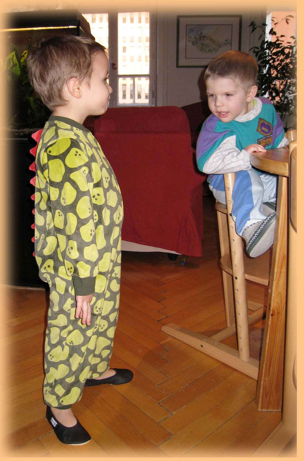 · Michi war heute am Nachmittag mit dem Papa einkaufen und hat einen voll tollen Pyjama bekommen. Ich freu mich schon wenn er das raus gewachsen ist, was bei seiner Wachstumsgeschwindigkeit aber noch lange dauern kann, damit ich das Ding anziehen kann :) · Für die Batman-Maske waren die beiden leider zu spät dran, da war der Laden schon zu. Also muss er sich noch ein bisserl gedulden, bis er seinen aktuell größten Wunsch erfüllt bekommt. · Die Nacht versprach nichts wirklich Gutes. Ich war schon sehr unruhig und habe erst nach einem Parkemedzapferl einschlafen können. Das wird wohl nicht schon wieder so eine blöde Mittelohrentzündung sein :( |