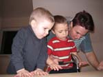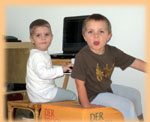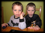 · Leider ging es mir nicht wirklich besser und so hat mich der Papa zur Begutachtung ins St. Anna gebracht. Da ja Wochenende war, mussten wir auf die 2A kommen. Meine Vorfreude auf meine Lieblingsschwester wurde leider enttäuscht - Kathi hatte keinen Dienst. · Also schnell einen Fingerstich für die Blutwerte und dann ab ins Spielzimmer. Nach einer Stunde wurde ich dann vom Dr. Dworzak untersucht. Dabei stellte sich heraus, dass ich am linken Ohr eine leichte MO habe und rechts aber noch nix zu sehen war. Zur Sicherheit, um den OP-Termin am 6.2. nicht zu gefährden, bekam ich aber ein Antibiotikum verschrieben. · Nachdem wir alles besorgt hatten, fuhren wir zur Oma nach Simmering. Dort schauts mittlerweile auch schon richtig wohnlich aus und der Computer war auch schon aktiviert. Da musste der Michi gleich Platz machen, weil ich muss nun meine Fertigkeiten mit der Maus verbessern, hat die Mama angeschafft :) · Der Michi ist in der Zwischenzeit wie ein Irrer durch die Wohnung gerannt. Dem fehlt eindeutig der Energieabbau durch den Kindergarten ;) |