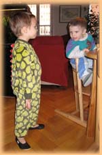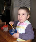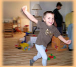 · Die Nacht war unruhig und für die Mama wenig erholsam. Für mich ging es einigermaßen, vor allem weil der Parkemed-Saft sehr gut hilft. Das Antibiotikum scheint auch gut anzuschlagen, jedenfalls schmeckt es sehr gut und hat auch eine lustige Farbe (rosarot). · So stand einem Kindergartenbesuch nix im Wege und ich ging gemeinsam mit Mama und Michi rüber. Papa war dann den ganzen Vormittag in Alarmbereitschaft, weil es ja immer sein hätte können, dass ich Fieber bekomme und abgeholt werden hätte müssen. Dem war aber nicht so und ich konnte den ganzen Vormittag bleiben. · Den Nachmittag hab ich verschlafen und so war ich fit für die Mama :) Außerdem haben wir eine DVD geschenkt bekommen (Findet Nemo) - vielen Dank an die Doris auf diesem Wege - und die musste natürlich gleich angeschaut werden. · Den ganzen Tag über hatte ich leichtes Fieber, aber die Nacht habe ich auch ohne Parkemed-Saft ganz gut überstanden. Nur mit dem Einschlafen hat es ein wenig gedauert. |