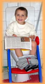 · Zur Abwechslung;) waren wir heute nicht im Spital sondern bei unserer Kinderärztin. Das hat den Vorteil, dass ich nicht eineinhalb Stunden, sondern nur eine Stunde Kindergartenzeit verliere :) Bei meiner Kinderärztin habe ich ja absolute Vorfahrt und komme sofort dran. Heute war die Spritze auch ganz OK, aber ein bisserl weinen muss ich trotzdem. Dafür hab ich heute im Kindergarten nicht geweint, sondern hab dem Papa nur ein schnelles Bussi gegeben - darauf besteht er ;) - und dann war ich schon weg, ohne mich noch einmal umzudrehen. · Heute wäre es nämlich besonders tragisch gewesen, wenn ich nicht hingehen hätte können. Es war nämlich ein Ausflug in den tief verschneiten Garten angesagt. Wer weiß ob da morgen überhaupt noch ein Futzerl Schnee liegt, so schnell wie der hier in Wien immer wegtaut. Auf der Strasse liegt nämlich nur mehr Matsch und ein Haufen Rollsplitt. Zusätzlich sind nun alle "Tretminen" in den Schneehaufen versteckt, das macht den Weg in den Kindergarten immer zu einer Zitterpartie :( · Michi war heute auch draußen, aber nicht im Garten, nein, der war im Prater auf der Jesuitenwiese am Rodelhügel. Der wird bei Temperaturen um den Gefrierpunkt sogar beschneit. Irgendwie muss das sehr lustig, aber auch wild gewesen sein, weil der Michi hatte eine ganz rote Wange. Die lies er sich sogar ganz ohne Weinen eincremen, das heißt was ;) · Abgeholt wurde ich heute um 11:30, das wird nun meine Standardendzeit werden. Daran muss ich mich erst gewöhnen, weil eigentlich bin ich ja für 17:30, das wäre die maximal mögliche Zeit :) Mal sehen, wie lange es dauert bis ich das ganz ausreizen darf. Da wäre ich dann zum Schluss auch mit dem Michi in einer Gruppe zusammen ;) · Angeblich bin ich ganz die Kopie von meinem Bruder, meinte zumindest eine Tante heute zu meinem Papa. Zum Glück ist der aber ein ganz ein lieber und braver Bub und so war das wohl als Kompliment gemeint ;) · Wir haben auch schon die erste Einladung im heurigen Jahr erhalten, wir werden am Wochenende die Familie Thurn..., Vall... oder doch Seeb..... wie auch immer. Wir werden Franziska, Theresa, Isolde und Joachim besuchen, das ist einfacher als da mit den Familiennamen zu jonglieren ;) Dann stimmt da auch wieder das Geschlechterverhältnis :) · Übrigens war das mit dem Topferl keine Eintagsfliege, ich bin sogar ganz begeistert davon! |