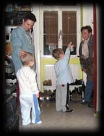 · Gleich in der Früh ist die Oma losgefahren um ihren Umzug zu überwachen. Das ging auch alles recht reibungslos über die Bühne. Sogar der Fernsehsessel ist mitgekommen. Den Platz hat aber gleich der Michi für sich in Anspruch genommen. Dafür hab ich mir seine Sitzunterlage unter den Nagel gerissen :) Das Foto von ihm ist vom 24.12.2005 in Omas alter Wohnung. · Ich war wieder die volle Zeitspanne im Kindergarten und anschließend ordentlich müde. · Am Abend haben wir dann alle gemeinsam die Oma in ihrer Wohnung besucht und ihr beim Ausräumen geholfen. Eine ganze Kiste mit Spielsachen war da auch dabei und ein Sackerl von der Christa, das ist immer ein Höhepunkt bei Omas Besuchen. · Beim Heimfahren ist dann der Michi eingeschlafen und wurde auch nicht mehr munter. Vor dem Umziehen hat der Papa davon natürlich noch ein paar Bilder machen müssen - also der fotografiert wirklich fast alles :) |
