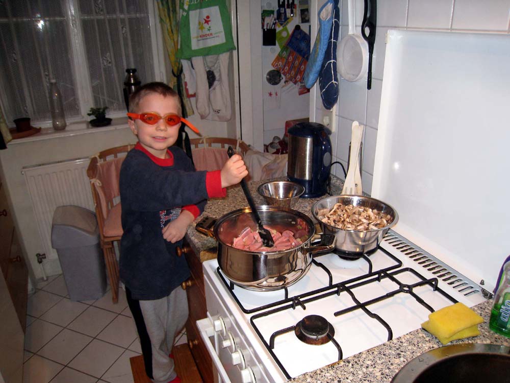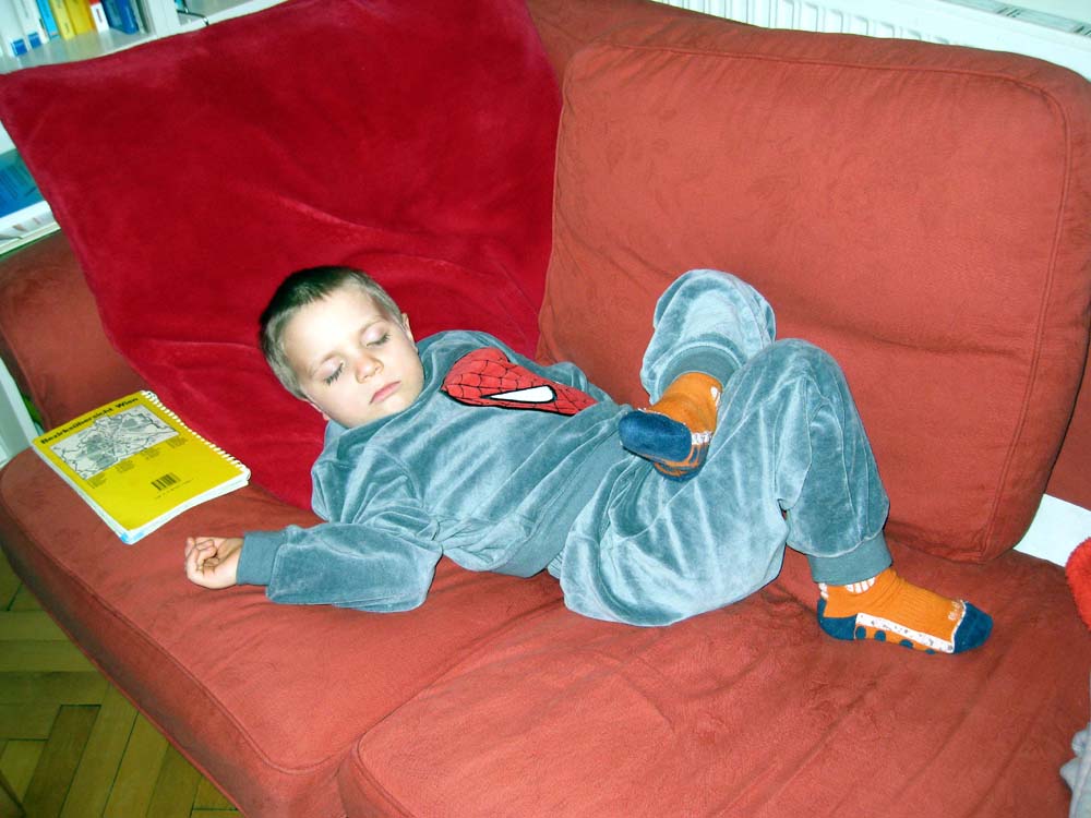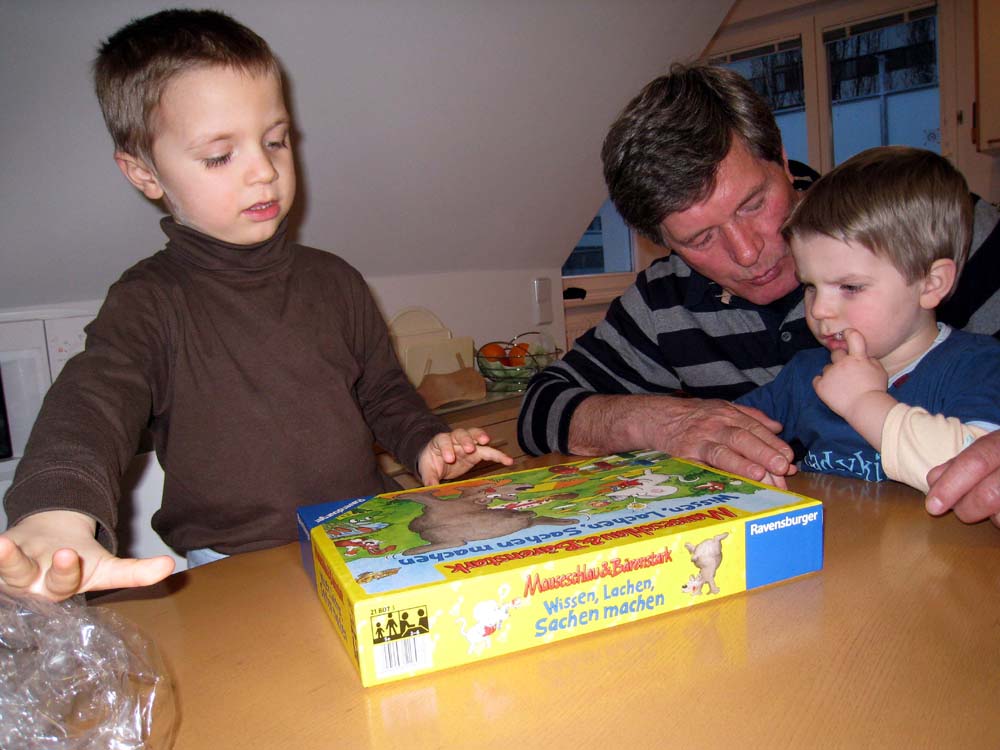 · Oma ist nun auch wieder zum Arbeiten in Salzburg und morgen fliegt die Mama nach Berlin. Also sind wir dann wieder eine frauenfreie Männerbude. Aber beim Papa ist's immer streng, der lässt da gar keinen Schlendrian einreißen |
