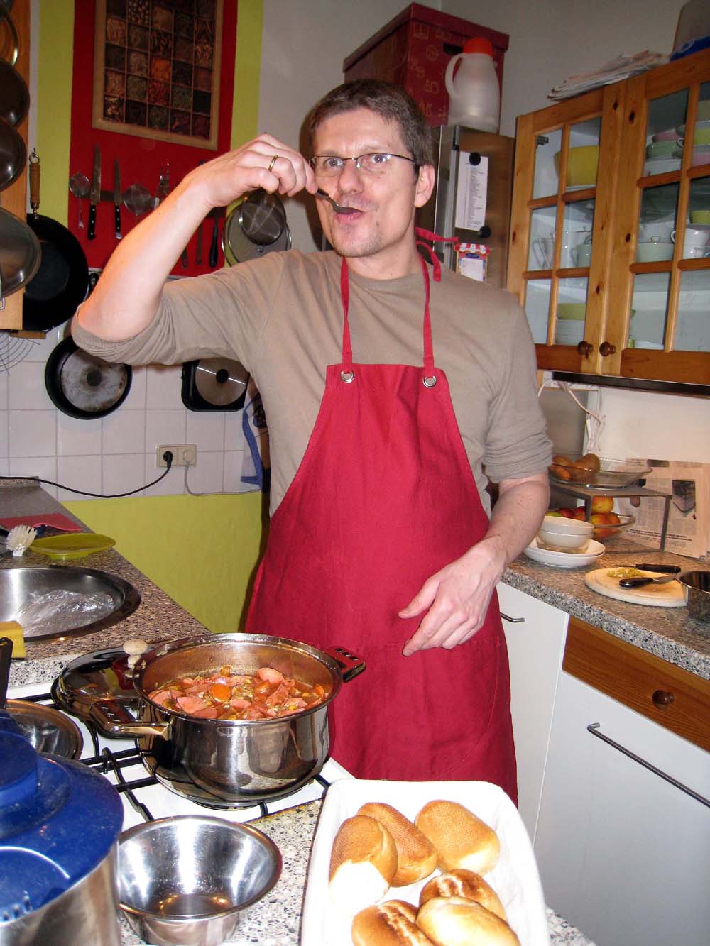 · Ich wurde in der Zwischenzeit von der Oma umsorgt. · Abends waren dann och wilde Geburtstagsvorbereitungen für morgen zu erledigen. Eigentlich könnten da auch 20 Leute kommen - Essen gäbe es genug :) · Aber Am Sonntag kommen eh noch 3 liebe Freunde zum Restlessen. |
