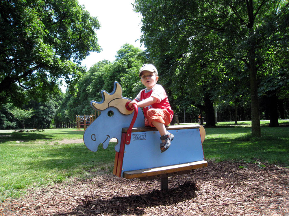 · Fast 30°C hatte es heute in Wien. Da war der Papa doch gleich motiviert! Also den Fellsack vom Kinderwagen entfernt und schon waren wir nach dem Kindergarten im Prater. · Alles schon sehr grün und wenige Leute unter der Woche. Im Stadionbad waren auch noch recht wenige Leute - wir waren dort heuer noch gar nicht, obwohl wir eine Saisonkarte hätten :( Naja, mit meinen Mittelohrentzündungen dürft ich eh nicht ins Wasser - also ist es vielleicht sogar besser so. · Auf meinem Lieblingsspielplatz war auch nix los. Daher haben wir den Prater mit seinen vielen kleinen Nebenwegen erkundet. Mir war das ja nicht so recht, ich wollt lieber zu einem Spielplatz mit vielen Kindern ;) |