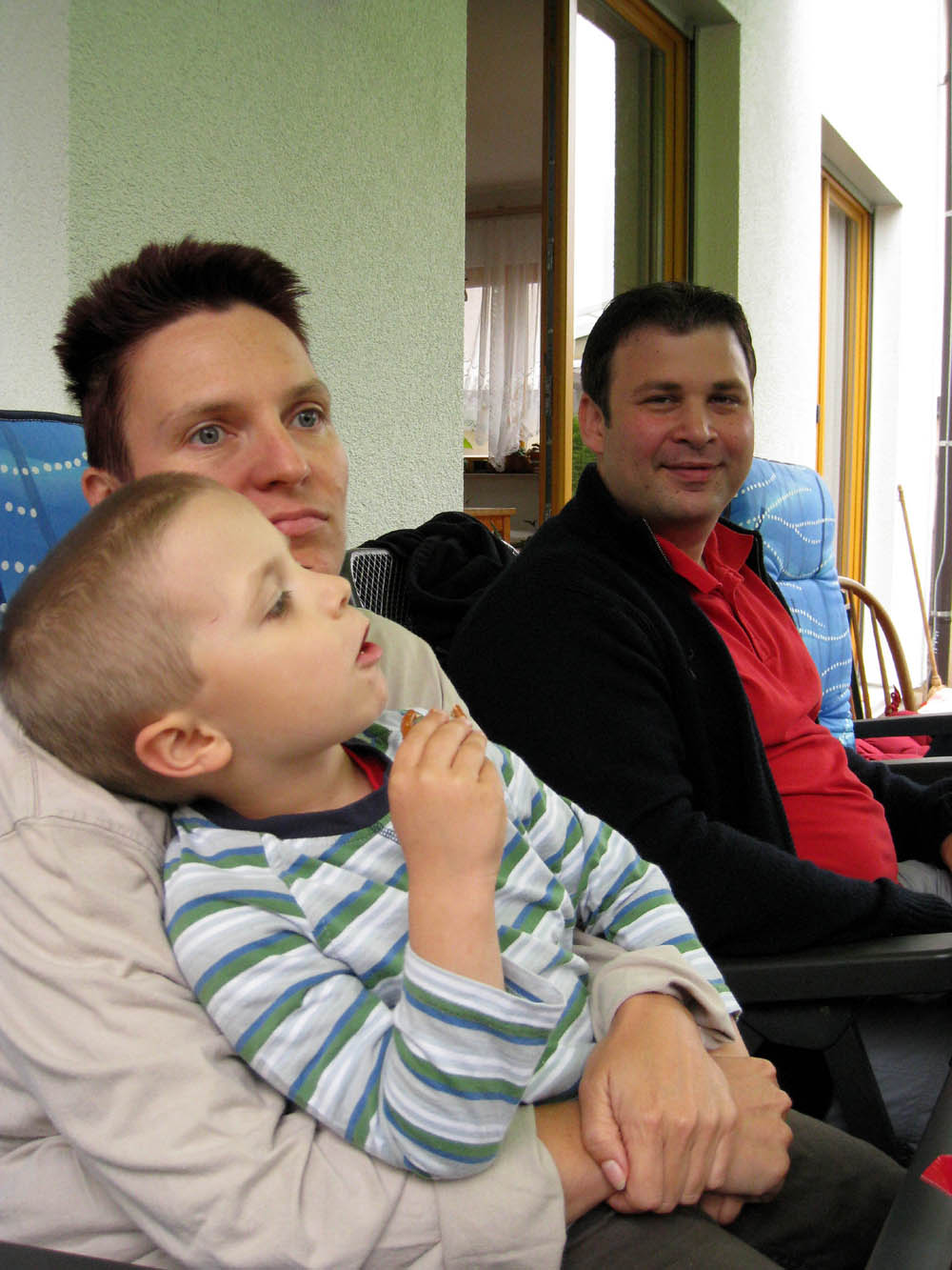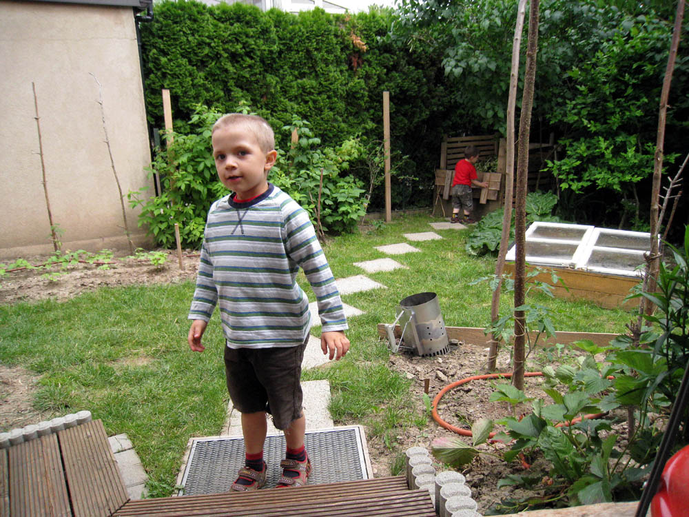 · Da heute angeblich der schönste Tag der Woche angekündigt war, sind wir nach dem Kindergarten gleich zur Oma gefahren. Schön war es ja auch, aber auch schön windig. Daher war ich mehr drinnen und hab mich um den Computer gekümmert. · Am Abend hab ich dann noch gemeinsam mit dem Papa einen Tisch zum Mistplatz gebracht und den Michi vom Kindergarten abgeholt und dabei gleich die Mama mitgenommen. · Auf Omas Terrasse steht nun ganz schön viel Grünzeug, leider, weil von den vielen Tomaten würden wir ganz gerne auch mal welche essen ;) |