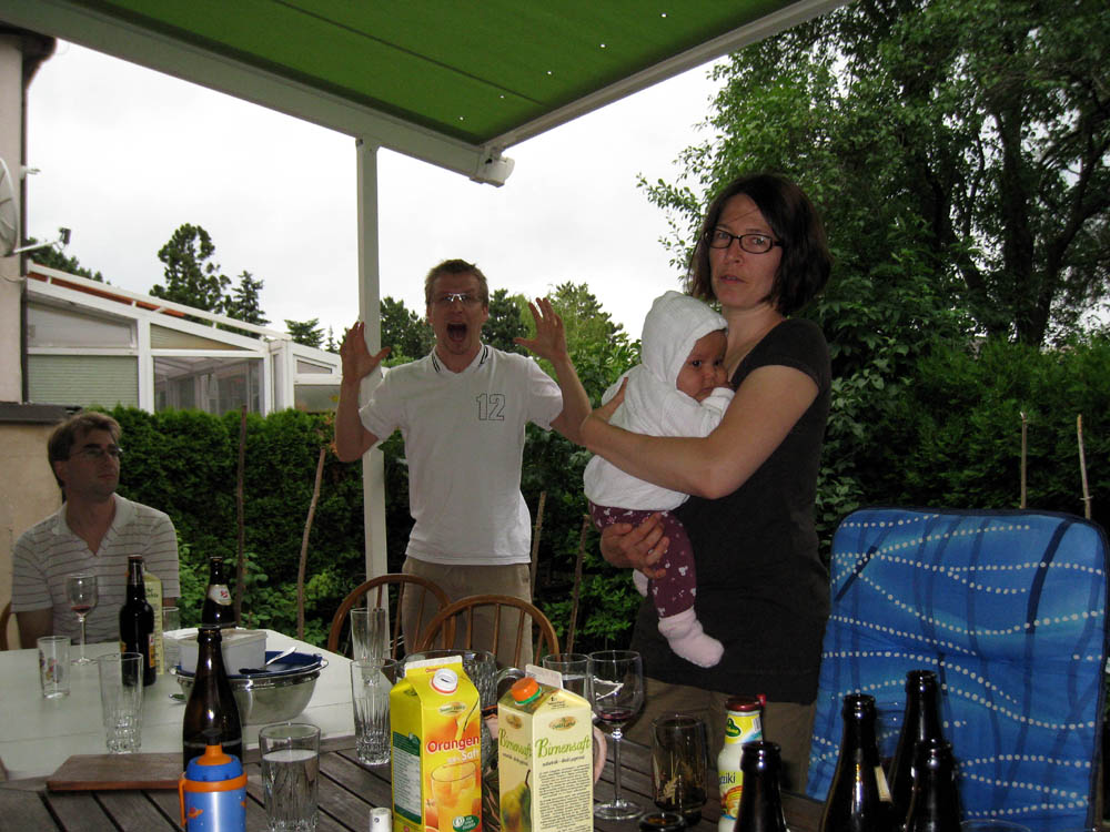 · Diese Feiertage sind schon immer anstrengend. Keine Rede von Faulenzen und Erholung. · Zuerst kommen Lydia und Bene zu uns um die Aktivitäten fürs Wochenende zu planen. Sie sind nämlich übers verlängerte Wochenende aus Lauf an der Pegnitz, das liegt bei Nürnberg, angereist. Da werden wir sicherlich irgendetwas Eisenbahnbezogenes machen - vielleicht unser Geburtstagsgeschenk zu Bene's 40er mit der Mariazellerbahn einlösen. · Am Nachmittag haben wir dann auch schon den nächsten Termin - Grillerei bei Susi und Michael! Das wird lustig - da sind dann nämlich 3 Michaels und so oft wie wir unseren rufen müssen, da werden sich die anderen Michis auch immer angesprochen fühlen :) |
