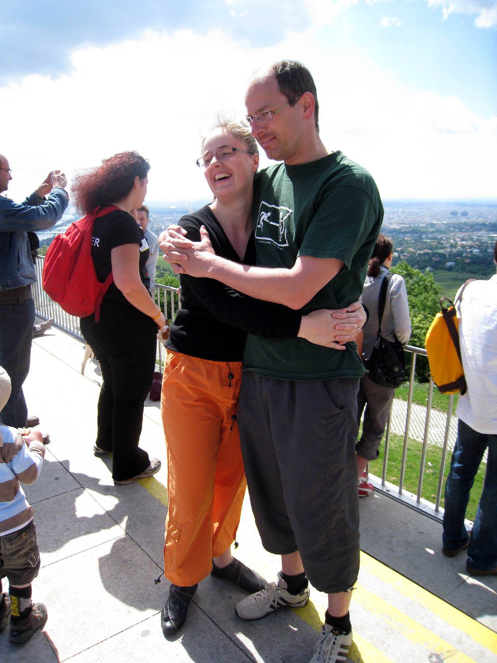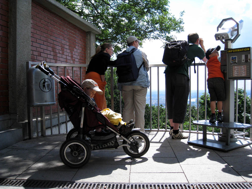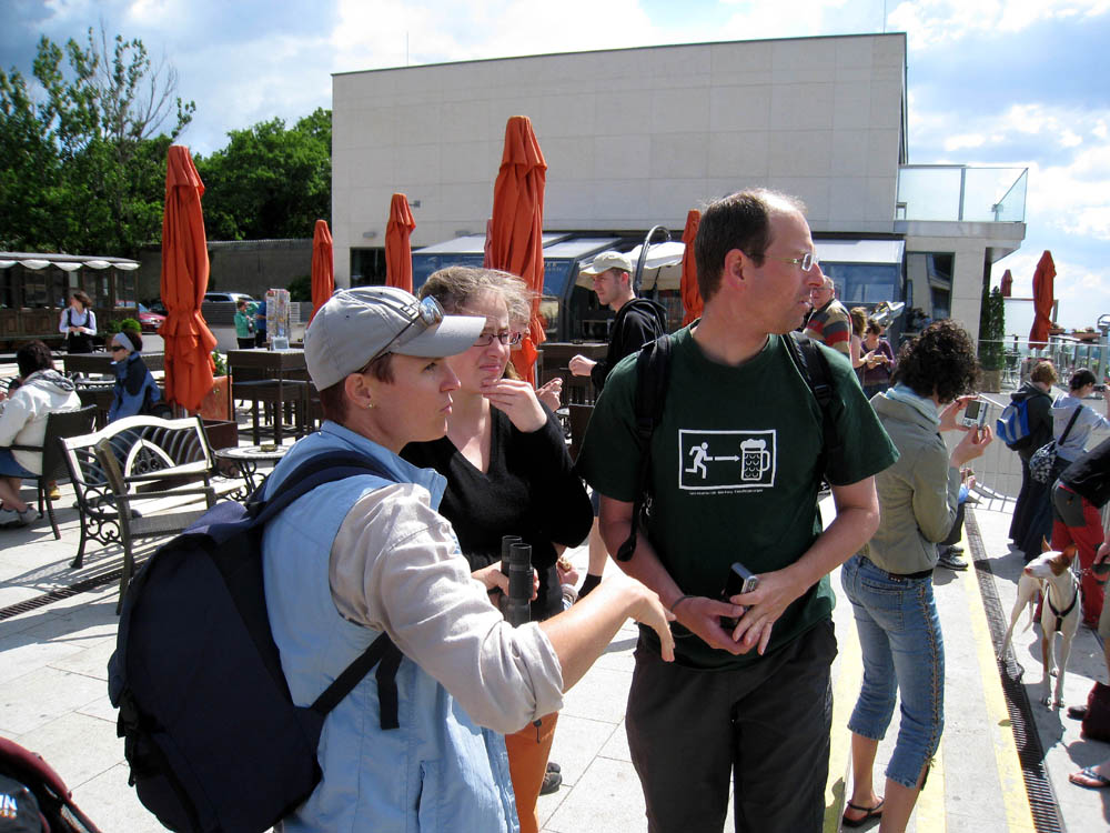· Anstrengend ist so ein Fenstertag schon. Zuerst mussten wir uns um eine neue Ration meines Antibiotikums kümmern und für das Wochenende bunkern. · Sodann mussten wir nach Heiligenstadt aufbrechen um uns mit Lydia und Bene für unsere Wienerwaldwanderung zu treffen. Mit dem Bus zum Kahlenberg. Leider gemeinsam mit einer großen Gruppe total nerviger, mittelalter (aber junggebliebener) Touristen = Lautstärke wie in einem Reisebus beim Wandertag :( Also uns war das schon mal viel zu laut. · Am Kahlenberg angekommen, machten die natürlich auch mal die Terrasse dicht und wir mussten auf den alten Aussichtsbereich ausweichen - dort war es dann aber schön ruhig und wir konnten mit Papa's Fernglas raten was was war :) · Anschließend gab es eine ausgedehnte Wanderung durch den Wienerwald - vom Kahlenberg zum Lebensbaumkreis beim Cobenzl. Das muss man aber erst mal finden, weil die "Beschilderung" der Stadt Wien lässt sehr zu wünschen übrig! · Mittagessen gab es dann im "Häusl am Himmel" - sehr deftig, aber auch sehr gut. Dabei wurde mit unseren Freunden aus Franken auch an einer deutsch-deutschen Übersetzung der einzelnen Speisen gearbeitet :) · Nachdem wir dann beim Lebensbaumkreis unseren jeweiligen Lebensbaum gefunden und die Charakterisierung überprüft hatten, machten wir uns auf den Weg einen gemütlichen Heurigen zu finden. Was soll ich sagen, statt einen kleinen ruhigen Heurigen zu finden, sind meine Eltern mit ihren Freunden in Grinzing in einen Supertouriheurigen gestolpert. Dort war es zwar nett zu sitzen und der Wein war gut, aber die Preise waren eben auch dementsprechend. So haben wir unseren Freunden eben die touristische Seite Wiens gezeigt und beim nächsten mal werden wir es besser machen :) |