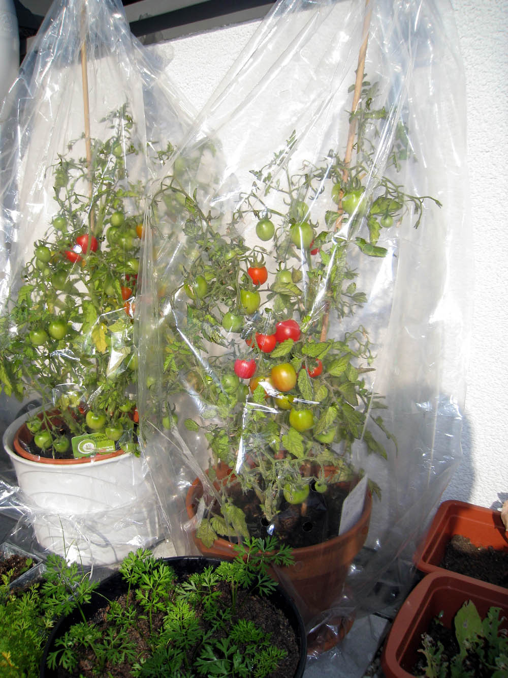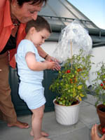 · Das Spritzerl war schnell erledigt und so konnte ich noch den Vormittag im Kindergarten verbringen. · Am Nachmittag waren wir dann bei der Oma und haben ihre schönen Tomaten bestaunt - und auch gegessen :) Auf einer Pflanze waren 44 Stück, da hat die Oma gleich keine Lust mehr gehabt die zweite auch zu zählen ;) · Nur die Karotten haben eine eigentümliche Wuchsform, aber vielleicht ist das ja für Simmering typisch :) Schmecken tun sie jedenfalls vorzüglich! |