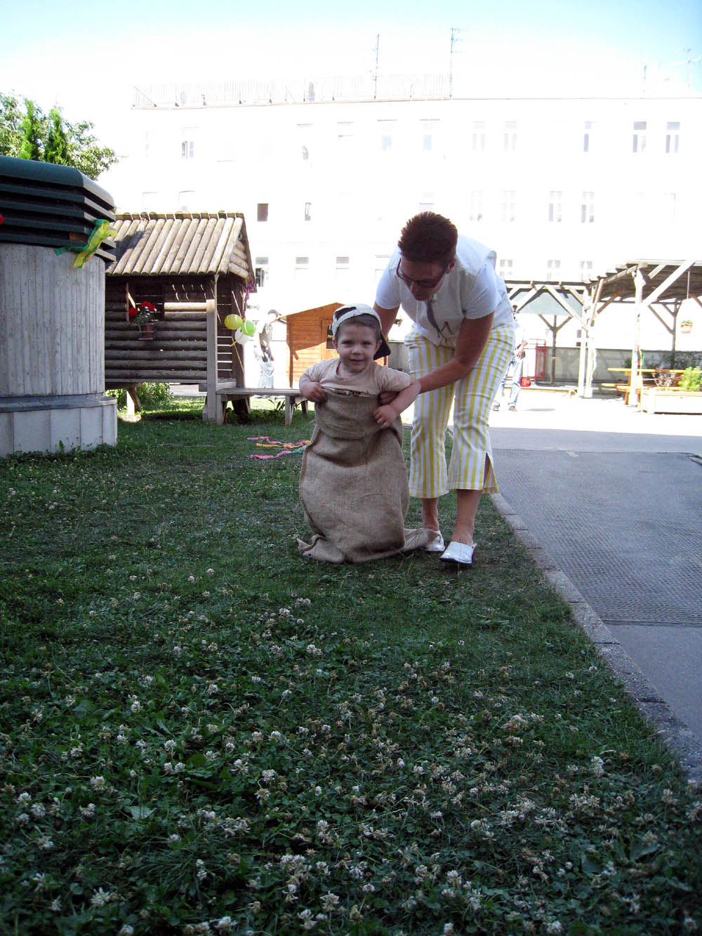 · Tag 3 der Chemo kann ich ja immer bei meiner Kinderärztin machen und verliere dadurch auch kaum Kindergartenzeit ;) · Noch dazu war ich heute zweimal im Kindergarten. Zuerst bis Mittag und ab 16 Uhr nochmal zu unserem Sommerfest. Da gab es einiges zu tun: Fische fangen, Scheibtruhe fahren (gefahren werden), Schatz suchen, Sackhüpfen und Nudeln schätzen. · Das mit den Nudeln ging knapp daneben und wir mussten den schönen italienischen Geschenkkorb dem Roman und seinem Papa überlassen - wegen 2 Nudeln :( · Hama uns halt mit einem Schnitzi getröstet ;) · Übrigens gab es, wie ihr sehen könnt, für jede absolvierte Station einen Stempel und der Michi haben alle mindestens zweimal gemacht :) |