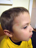 · Heute bin ich alleine in den Kindergarten gegangen, weil dem Michi wurden die Streiferln entfernt. · Er war dabei angeblich sehr tapfer und hat sich das ganz brav runterzupfen lassen. Hat aber viel stärker geklebt als sich das alle gedacht haben. Die Wunde sieht jedenfalls gut verheilt aus und wir hoffen, dass seine Narbe schöner wird als meine. |