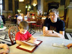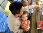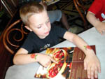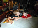 · Und wieder ein Tag mit besch..eidenem Wetter. Also Ersatzprogramm mit Onki und Tante im NHM. · Das war aber auch sehr lustig und wir hatten nach einer kleinen Stärkung gleich am Anfang auch genug Ausdauer um uns alles anzusehen - nun ja fast alles ;) Aus Papas kärntner Heimat gibts im NHM auch was - nämlich versteinerte Linsen aus Guttaring. Da hat der Onki schön geschaut, wie er das gesehen hat. · Zu diesen Linsen gibt es eine sagenhafte und eine zoologische Erklärung ;) · Der Michi hat sich sogar das Mikrotheater mit vielen Insektenlarven angesehen - vielleicht wird er ja mal Biologe. In Wien kann man es damit ja bis zum Bürgermeister bringen! · Nach dem Museum haben wir uns noch im Bierometer gestärkt, wobei der Michi und ich zusammen schon einen ganzen Erwachsenen abgeben - zumindest was das Essen angeht :) |