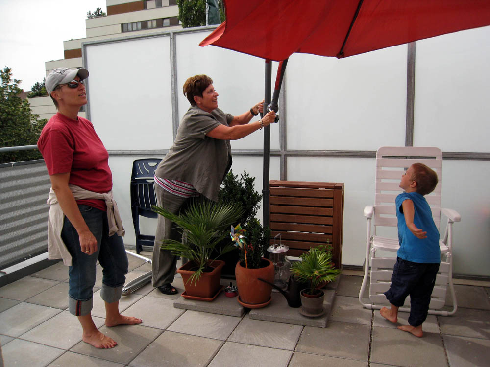 · Omi fährt wieder nach Salzburg und wir ziehen sofort bei ihr ein. Es ist einfach viel feiner in einer Wohnung mit Terrasse als in unserem Treibhaus. |