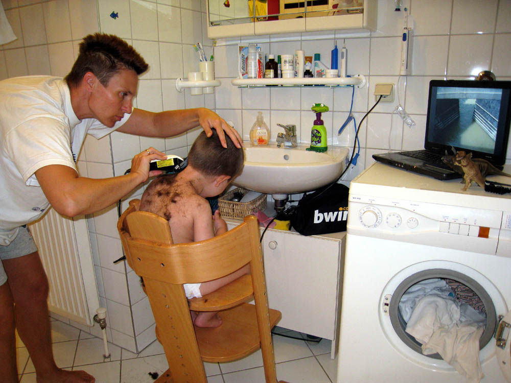 · Ein mal muss ich mir morgen noch ein Spritzerl geben lassen, dann ist das endlich vorbei. · Heute war es anfänglich eigentlich gut wie immer, bis ich mich dann am Abend dann doch noch recht überraschend und recht ordentlich übergeben habe. · Da meine Eltern in dieser Hinsicht recht rustikal sind, hat sie das nicht recht gestört, sondern sie dachten sich, dass sie da gleich Nägel mit Köpfen machen und so wurde ich auch gleich geschoren und gebadet - der Michi auch - eh klar ;) · Nun gehts mir aber soweit wieder gut - das ist immer so eine Sache von 1 Minute Speiberei und 1 Stunde Putzerei :) |